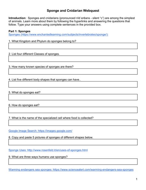 Read Online Sponges Cnidarian Webquest Answers Reader